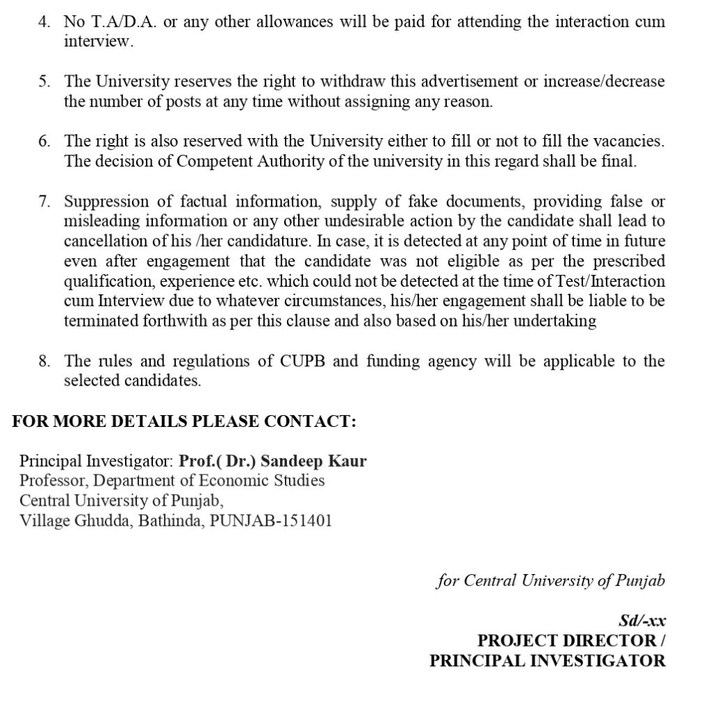 About Post: Apply for Punjab Central University Bathinda Post Form 2025. PROJECT RECRUITMENT NOTICE